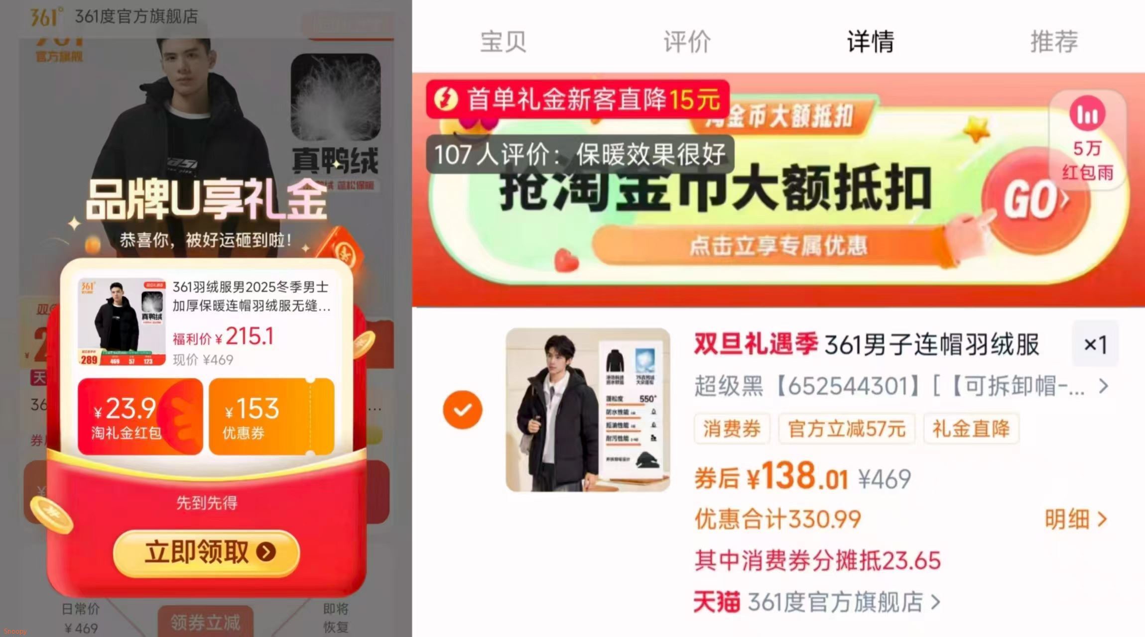 再凑1件 一起付歀后退凑 361度男歀羽绒服 138元 - 好单发报员 2025年12月22日 14:35 0 举报 再凑1件 一起付歀后退凑https://m.tb.cn/h.74avNzn361度男歀羽绒服 138元-大朵真鸭绒 保暖不显臃肿仅限今天到量提前结束! 复制文案