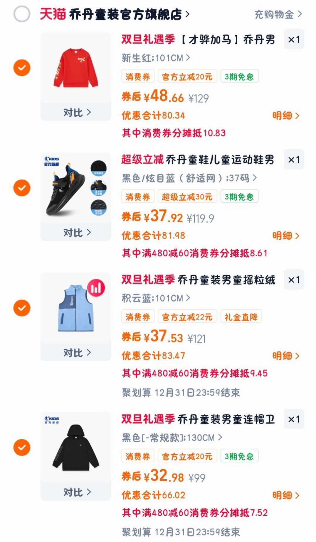 4、乔丹儿童卫衣,48亓