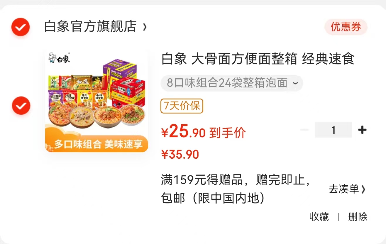 白象 大骨面方便面整箱 8口味组合24袋【25.9】