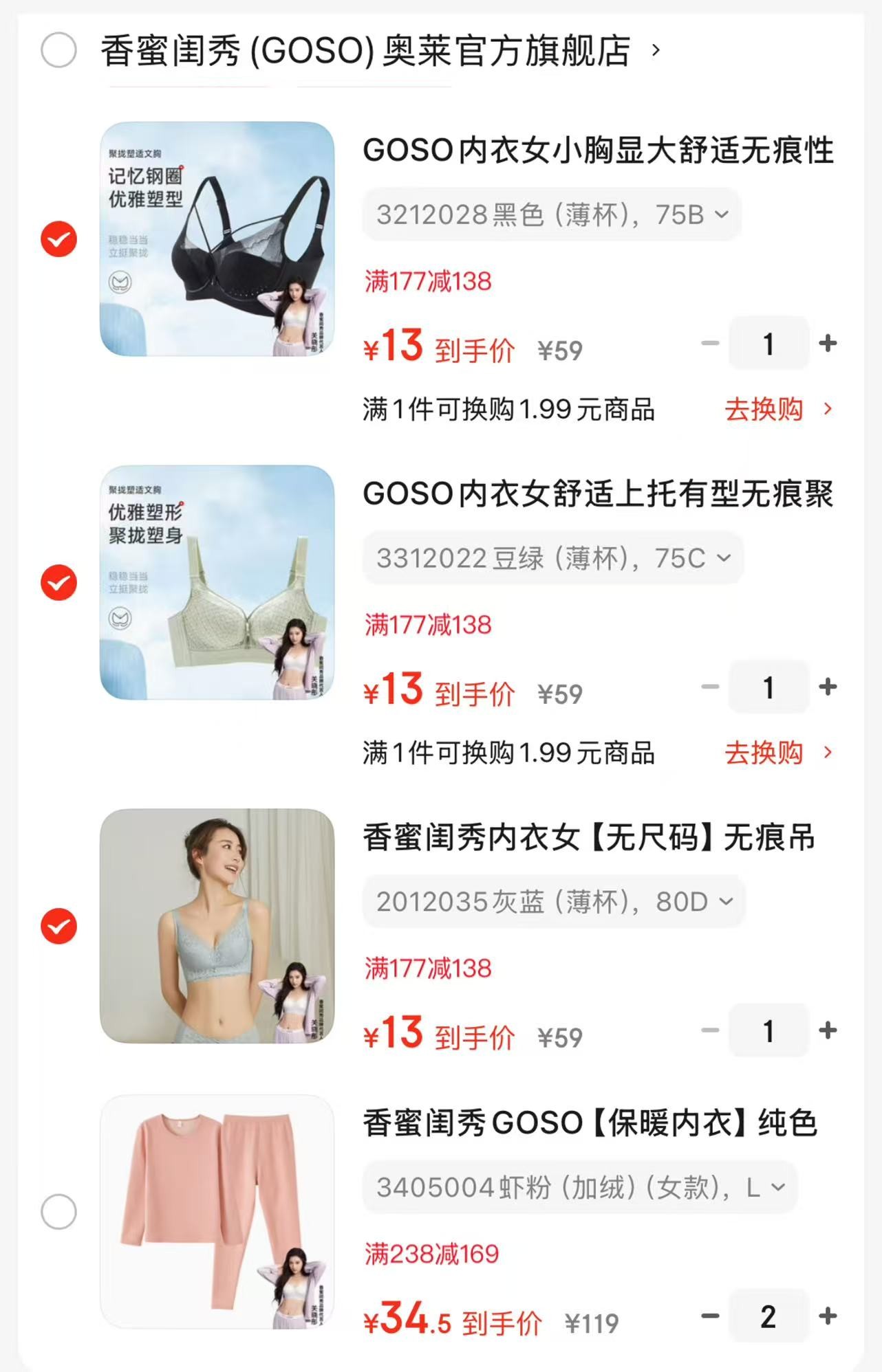 香蜜闺秀GOSO内衣,任选3件【39】