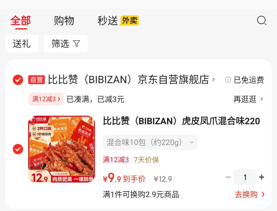 比比赞 (BIBIZAN)虎皮凤爪混合味220g【9.9】