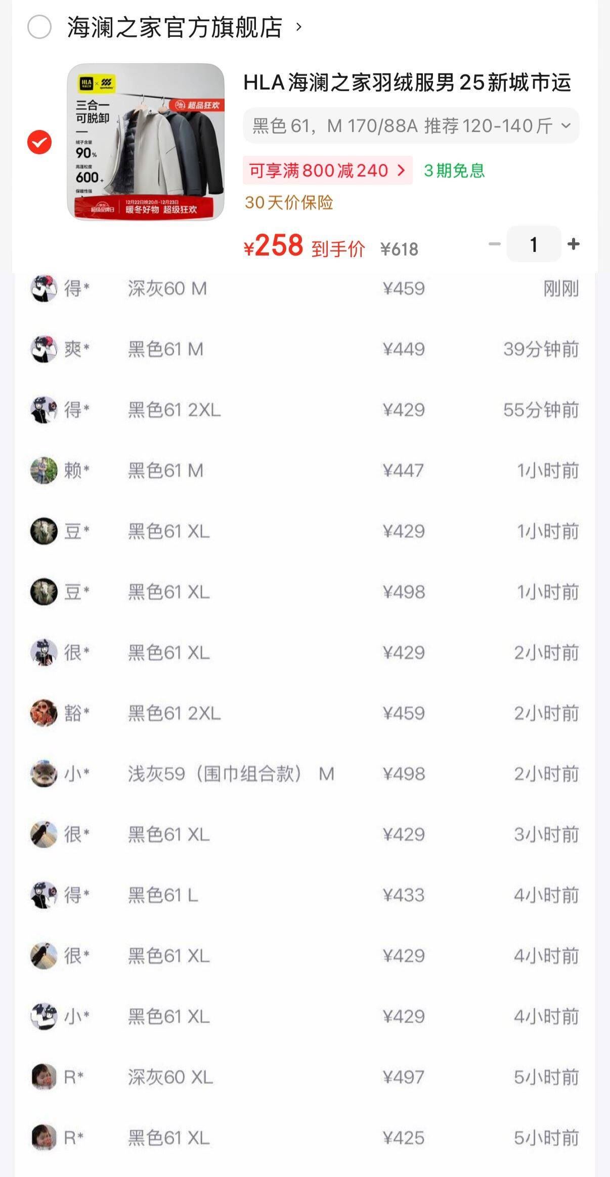 补货,海澜之家三合一羽绒服