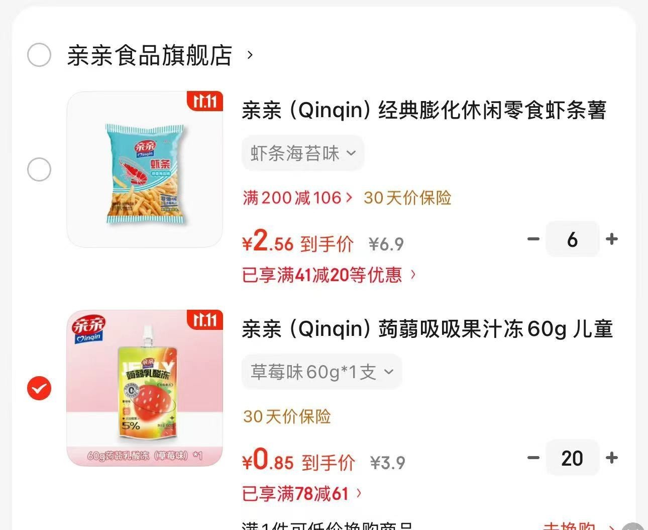 亲亲 (Qinqin)经典鲜虾条 海苔味80g*1包,任选6件【13.4】