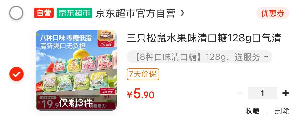 限山西 地区 三只松鼠水果味清口糖128g【5.9】