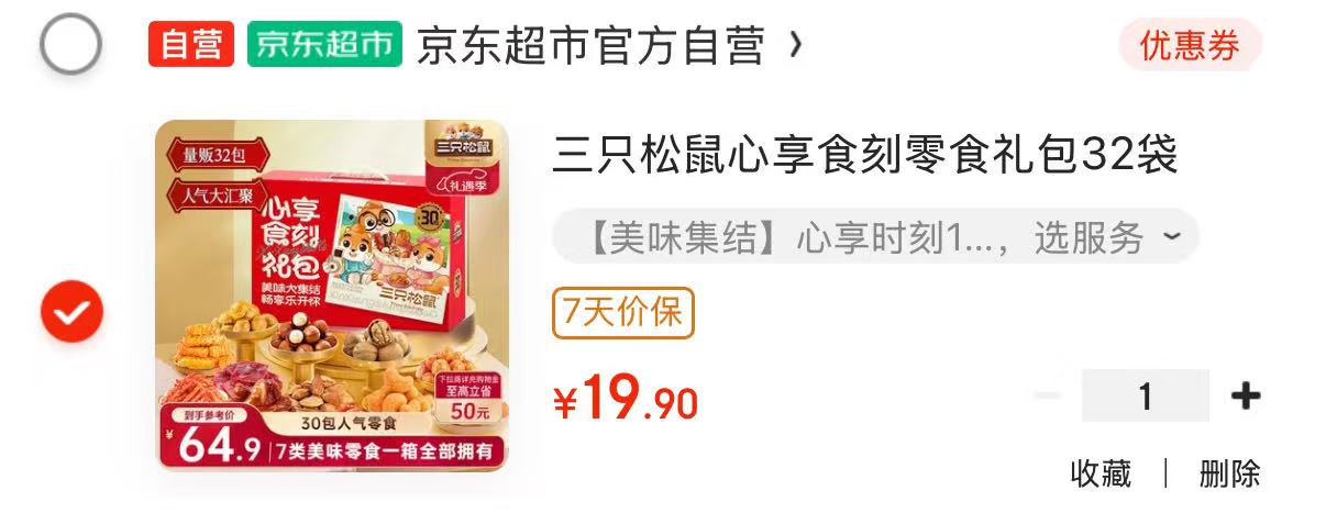 仅限合肥 地区 三只松鼠心享食刻零食礼包32袋1363g【19.9】