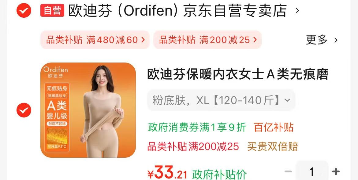 Plus领200-25补贴 欧迪芬 保暖内衣女士A类无痕7A抗菌套装,凑后 33.2 凑单参考: