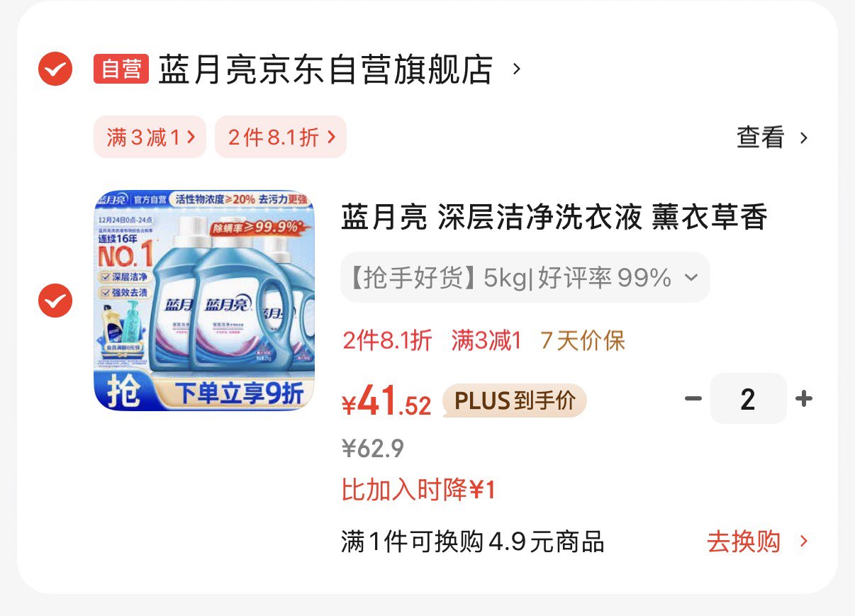 限上海浙江四川重庆等地区 蓝月亮 深层洁净洗衣液10斤 拍2件云闪付付窾叠补贴好单发报员2025年12月24日 14:220举报 限上海浙江四川重庆等地区蓝月亮 深层洁净洗衣液10斤拍2件云闪付付窾叠补贴到手66.4亓 折3.3/斤https://u.jd.com/A6qSVBx 复制文案
