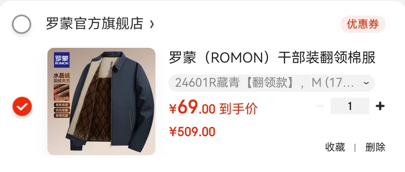① 罗蒙 (ROMON)干部装翻领棉服【69】