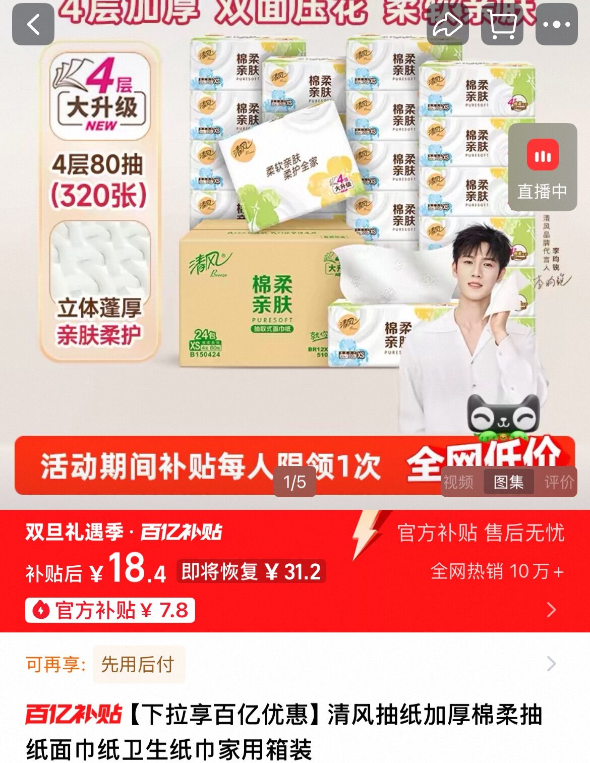 18.4亓 0.7/包 清风 抽纸加厚棉柔4层24包好单发报员2025年12月24日 17:230举报 18.4亓(0.7/包)清风 抽纸加厚棉柔4层24包https://m.tb.cn/h.74vxhlM复制文案