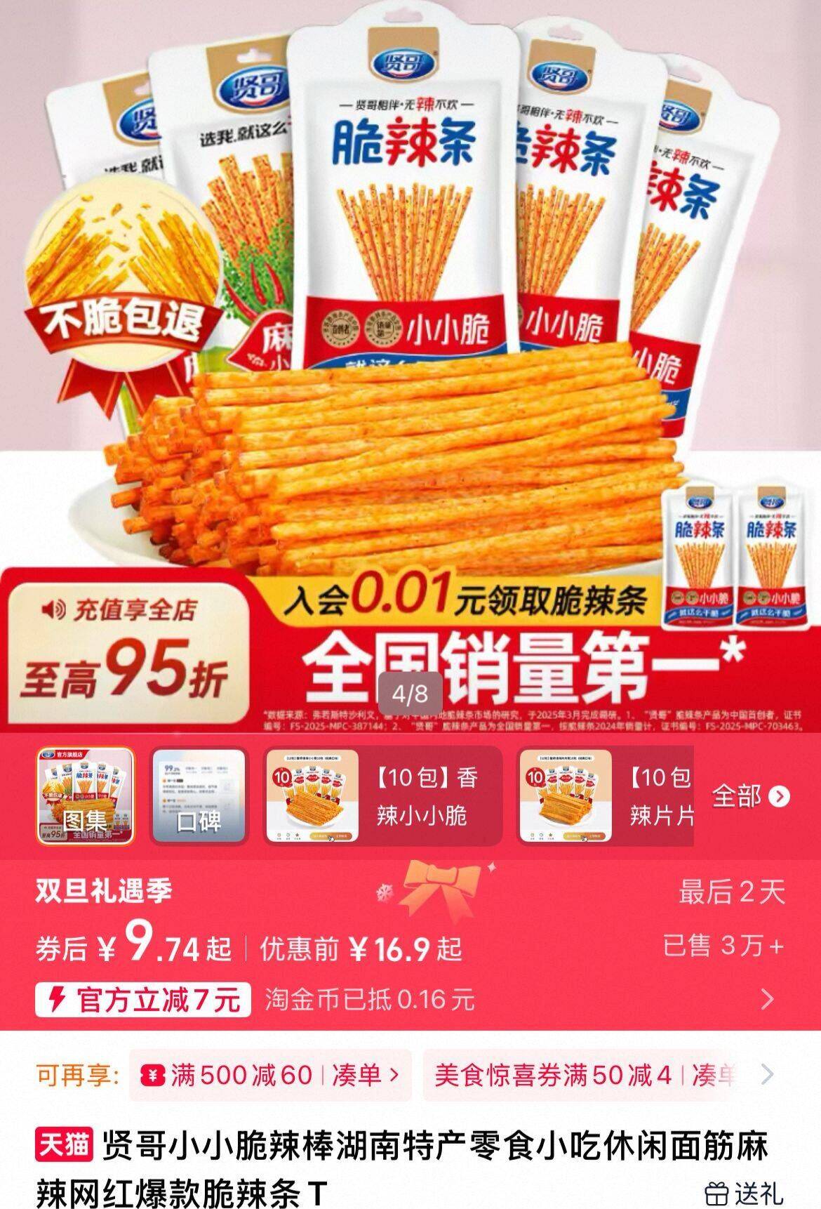 9.7亓贤哥小辣棒10包 宝藏追剧小零食 酥酥脆脆 香香辣辣的 嘴馋来根 过瘾 好单发报员 2025年12月24日 18:45 0 举报 9.7亓贤哥小辣棒10包宝藏追剧小零食 酥酥脆脆香香辣辣的 嘴馋来根 过瘾-https://m.tb.cn/h.74DMnN2 复制文案