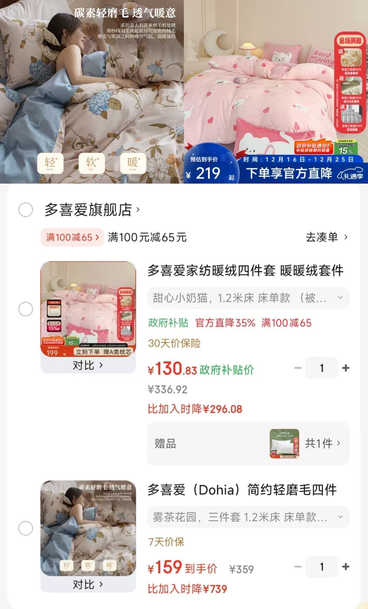 家纺暖绒多件套,130.9起