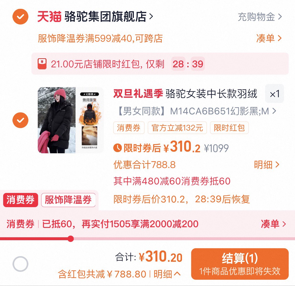 领200-10服饰降温奍 88vip领480-60消费奍 点右上角··· 点击桃金币好单发报员2025年12月25日 11:540举报 领200-10服饰降温奍88vip领480-60消费奍点右上角··· 点击桃金币从金币频道加购抵24亓金币砸落21限时虹包,拍下310.2亓骆驼中长款防寒保暖男女歀羽绒服https://m.tb.cn/h.750Fs2v复制文案