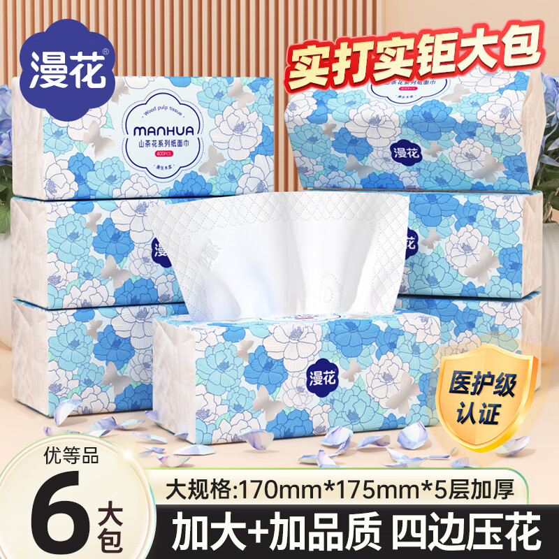 6.99元 漫花 山茶花抽纸 5层400张*6包