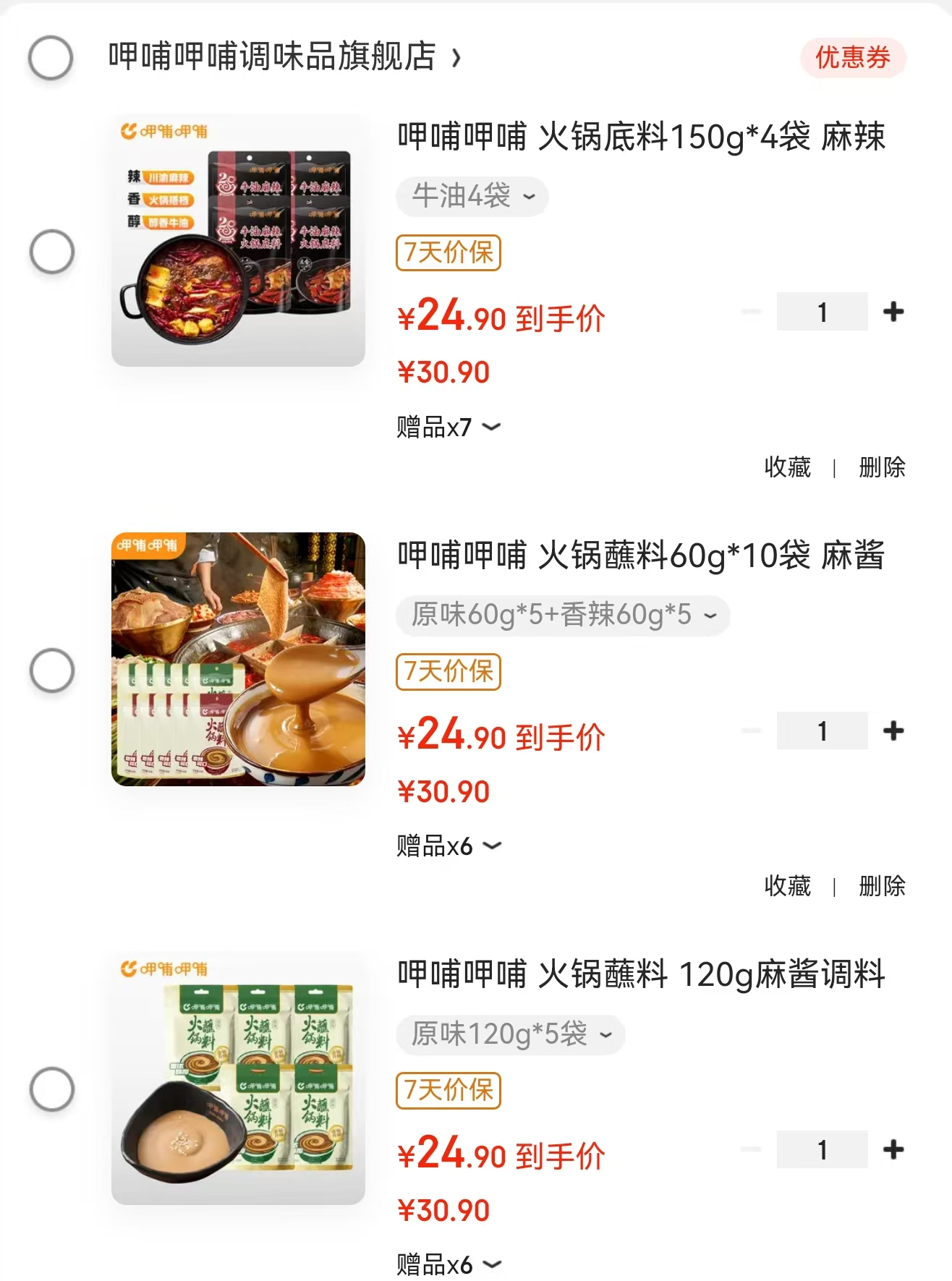 呷哺呷哺 火锅蘸料120g*5袋【24.9】 赠底料50g*6袋