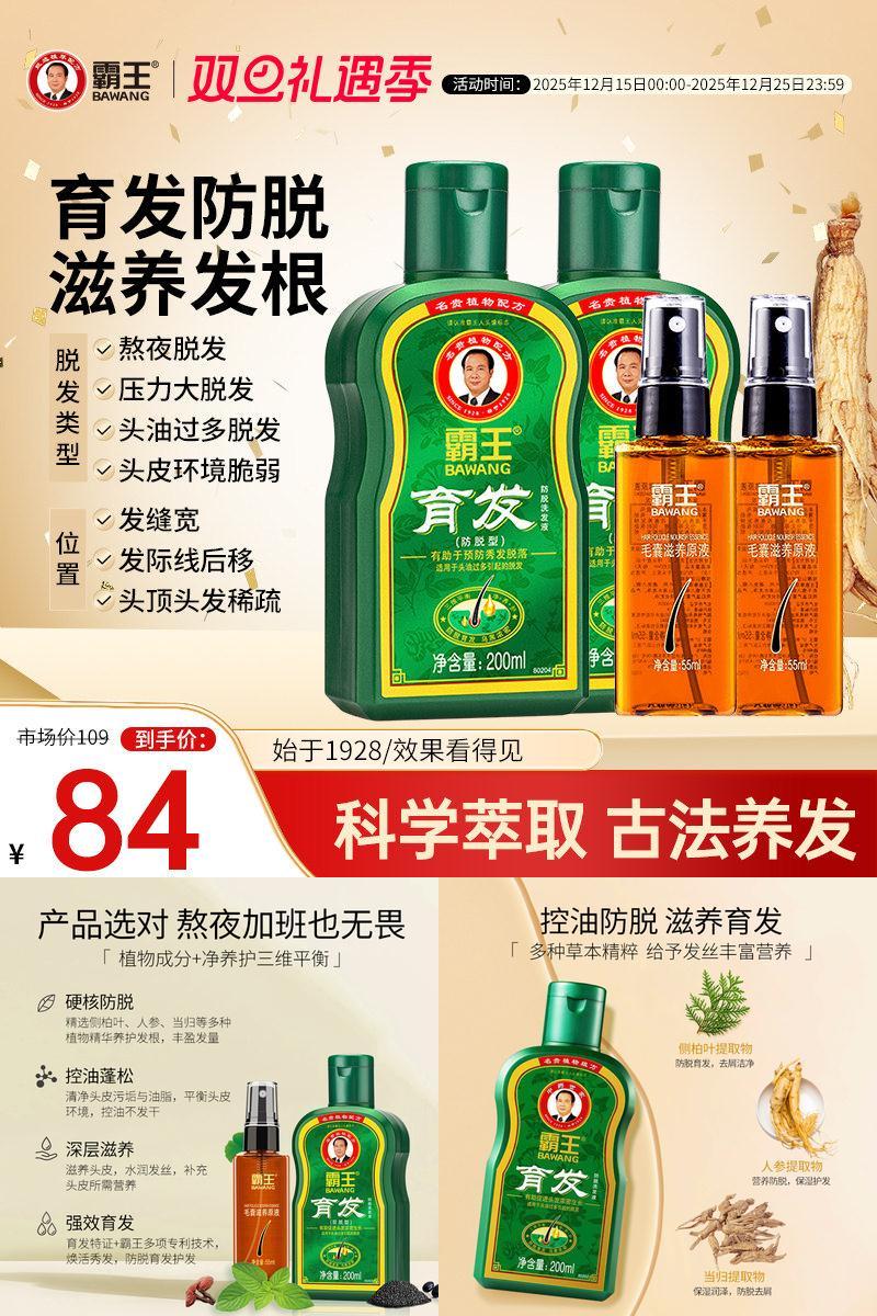 45元 霸王官方旗舰店 霸王防脱发生姜育发洗发水