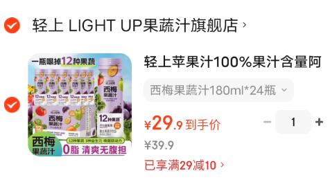 1.2亓/瓶速度。拍下29.9亓 ---- 先领29-10亓补贴券