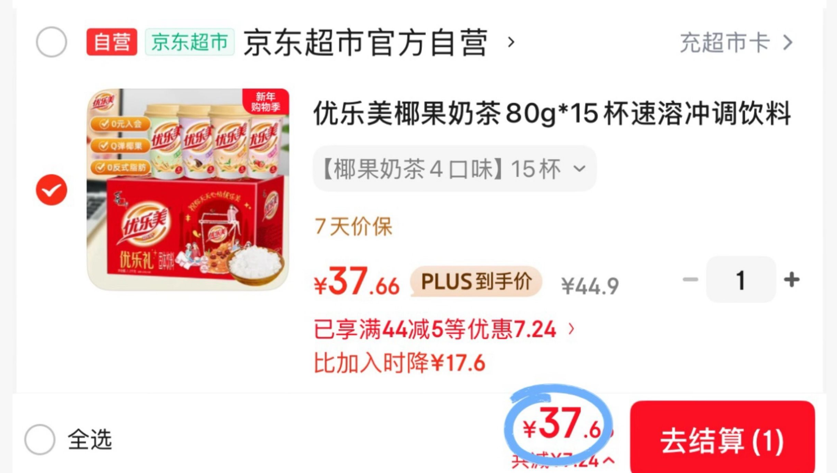 优乐美奶茶 椰果奶茶4味80g*15杯 【37】