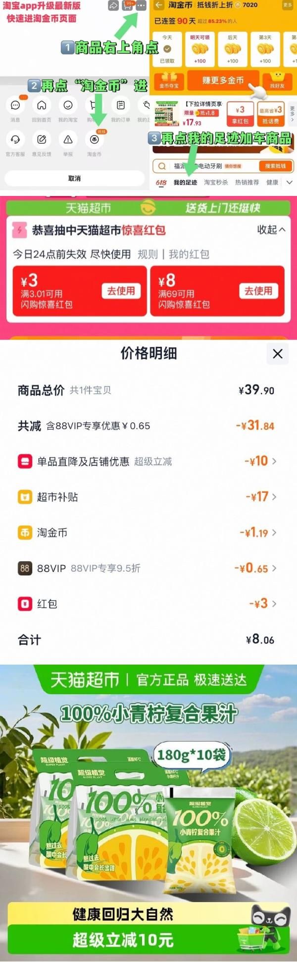 淘金币页面我的足迹加购,拍1件vip【8.06】