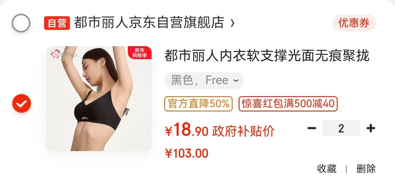 都市丽人 内衣软支撑文胸 ,拍2件 叠加政府补贴【37.8】