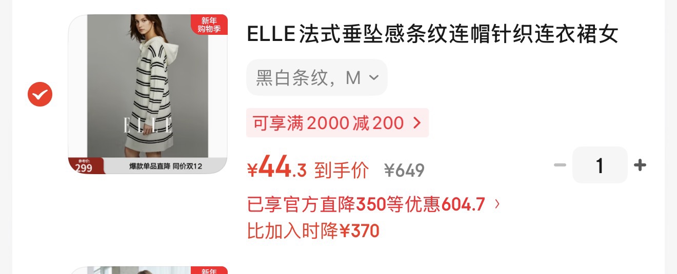 ELLE法式垂坠感条纹连帽针织连衣裙,凑后【44.3】https://u.jd.com/AgE39qv