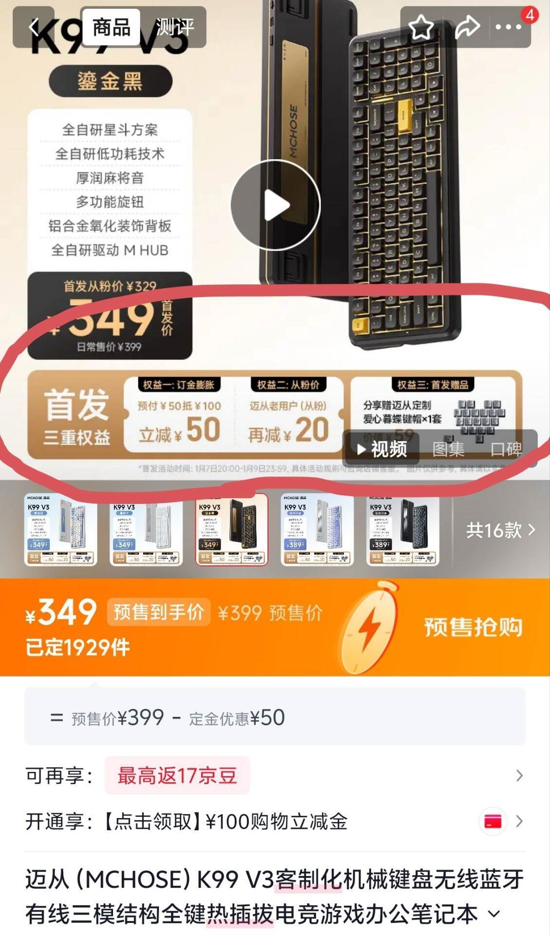 迈从薪品键盘K99v3元349,需预定! 1.7日开始,迈从老粉再-20亓 329元入 先咨询客菔!!好单发报员2026年01月01日 10:440举报 迈从薪品键盘K99v3元349,需预定!https://u.jd.com/ADJ0SNr1.7日开始,迈从老粉再-20亓 329元入先咨询客菔!!复制文案