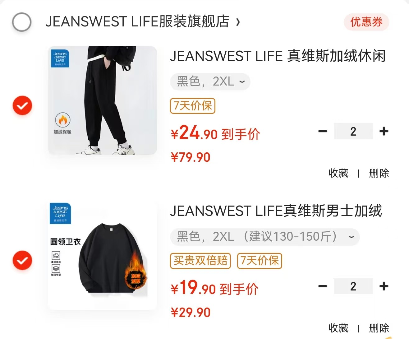 真维斯 男士加绒卫衣,任选2件【39.8】