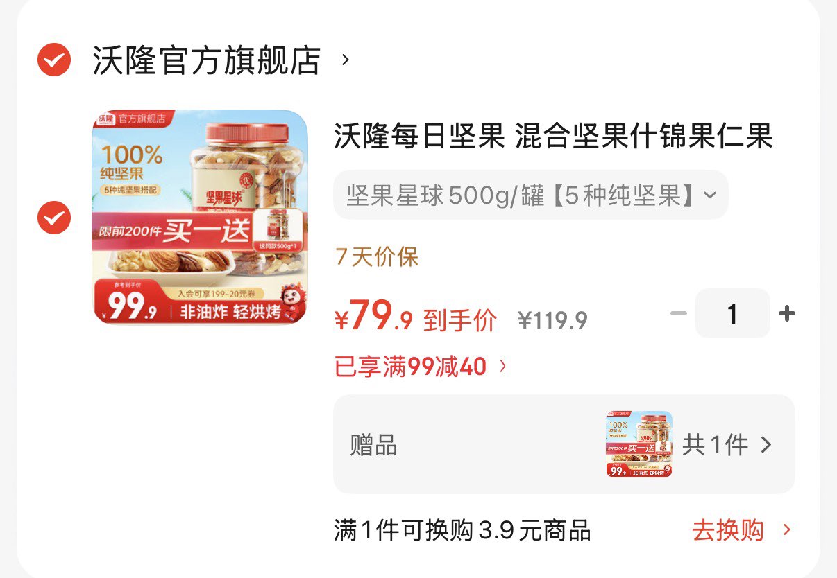 沃隆每日坚果 纯坚果500g