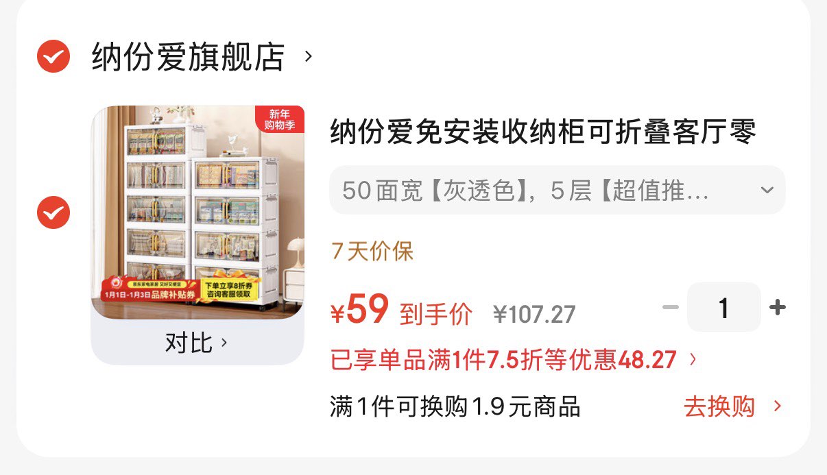 纳份爱5层可折叠收纳柜 59亓