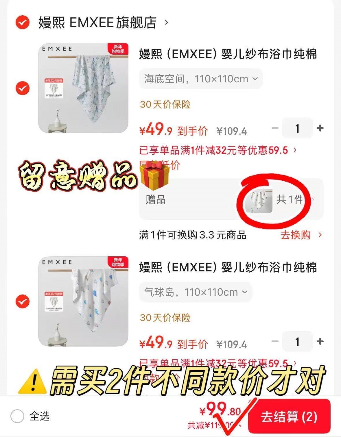 嫚熙 婴儿纯棉浴巾1.1*1.1m