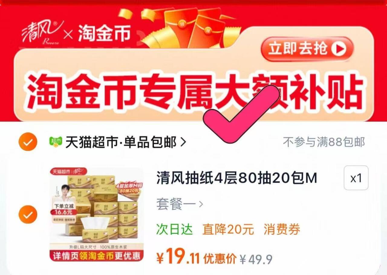 清风抽纸金装M码80抽20包 下拉详情19元.1,折0.9/包好单发报员2026年01月01日 14:340举报 清风抽纸金装M码80抽20包下拉详情19元.1,折0.9/包https://m.tb.cn/h.7hcoZgN复制文案
