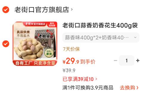 7.4亓/袋速度,拍下29.9亓 ---- 老街口 蒜香花生400g*2好单发报员2026年01月01日 15:420举报 7.4亓/袋速度,拍下29.9亓----老街口 蒜香花生400g*2奶香花生400g*2https://u.jd.com/Arli5iU复制文案