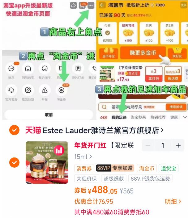商品右上角3个点,选淘金币