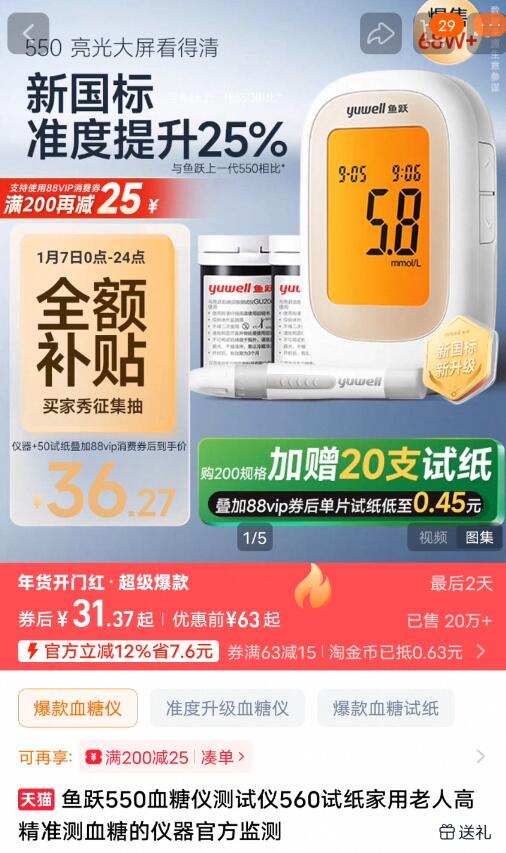 31.3亓速拍最后1选项 赠收纳盒 采血笔 电池 鱼跃 血糖仪 20试纸 20采样针 好单发报员 2026年01月07日 00:56 0 举报 31.3亓速拍最后1选项赠收纳盒 采血笔 电池【鱼跃】血糖仪 20试纸 20采样针https://m.tb.cn/h.7iVX0rc---鱼跃史低抓紧!线下都得七八十可以给自己测 做到有备无患 复制文案
