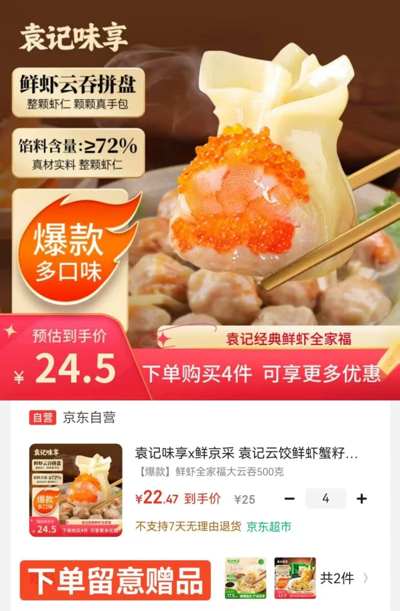 袁记云吞发車 自营 袁记味享 鲜虾云吞500g 买4件89.9亓,赠玉米云吞500g 好单发报员 2026年01月09日 09:00 0 举报 ——袁记云吞发車——【自营】袁记味享 鲜虾云吞500ghttps://u.jd.com/EGwl4dJ买4件89.9亓,赠玉米云吞500g*真材实料 整颗虾仁 超.好吃~ 复制文案
