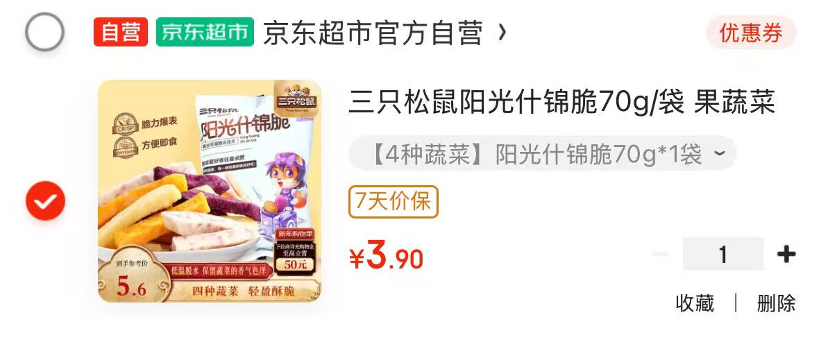 三只松鼠阳光什锦脆70g/袋【3.9】