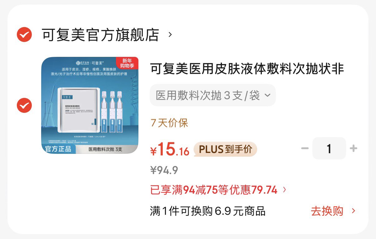 Plus拍下15.1亓 可复美面膜1片 次抛3支 好单发报员 2026年01月10日 11:16 0 举报 Plus拍下15.1亓可复美面膜1片 次抛3支https://u.jd.com/EGsRUM2 复制文案