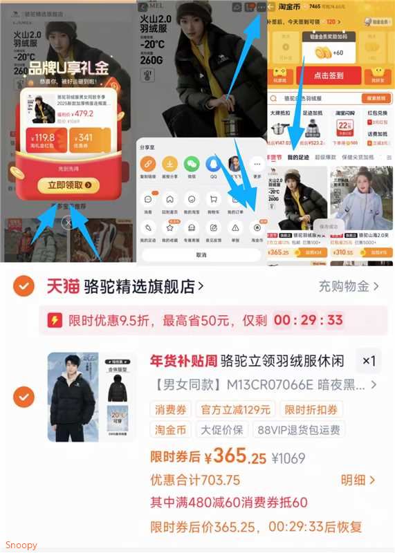 骆驼 立领短窽羽绒服365元 88叠480-60券 弹限时鸿宝 -好单发报员2026年01月14日 10:420举报 骆驼 立领短窽羽绒服365元88叠480-60券 弹限时鸿宝-1.淘宝打开口令,弹礼金领了2.商品右上3个点,选淘金币3.选 我的足迹-找到商品拍下https://m.tb.cn/h.7PugRPF复制文案