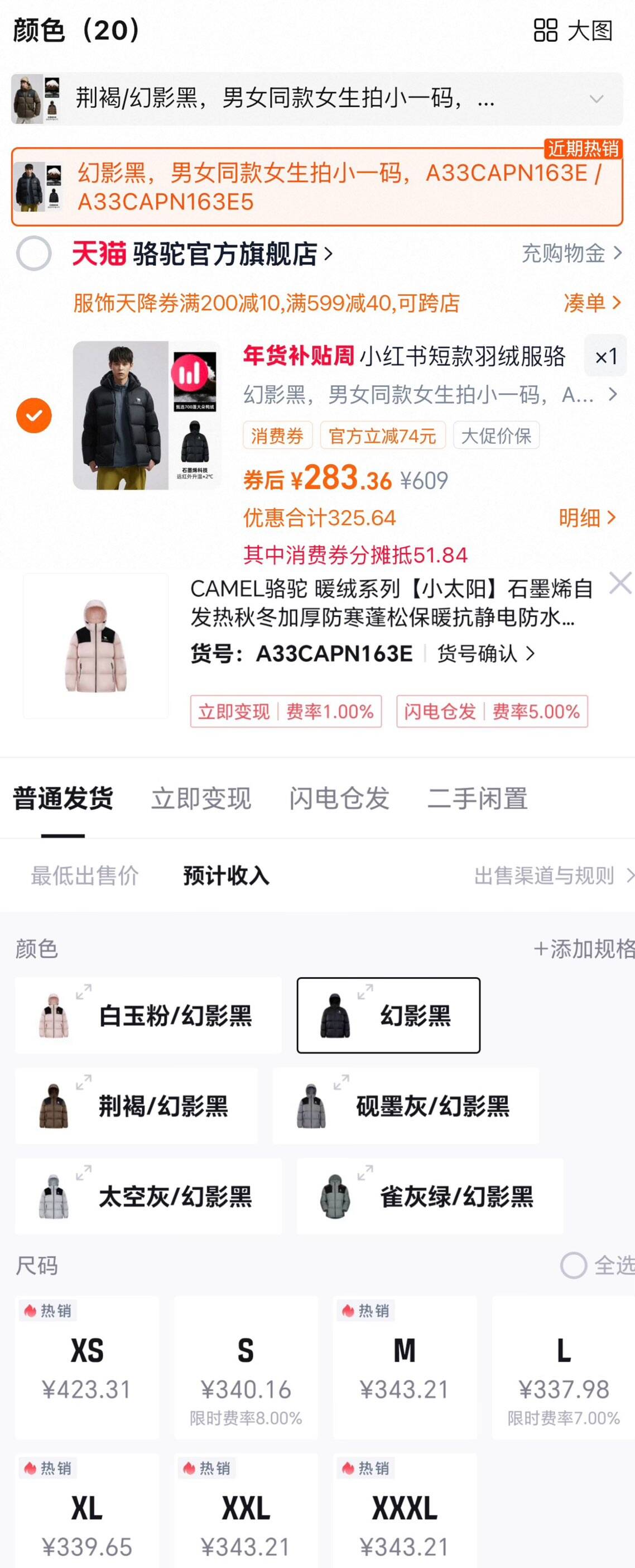 用肖費卷购物车到手283