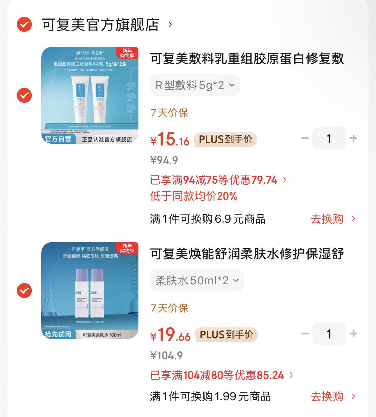 可复美焕能柔肤水50ml*2 Plus拍下19.6亓 折9.8/瓶 可复美R型敷料如5g*2好单发报员2026年01月14日 12:490举报 可复美焕能柔肤水50ml*2Plus拍下19.6亓 折9.8/瓶https://u.jd.com/EayDKMH 可复美R型敷料如5g*2Plus拍下15.2亓 折7.5/支https://u.jd.com/EgySg5f 复制文案