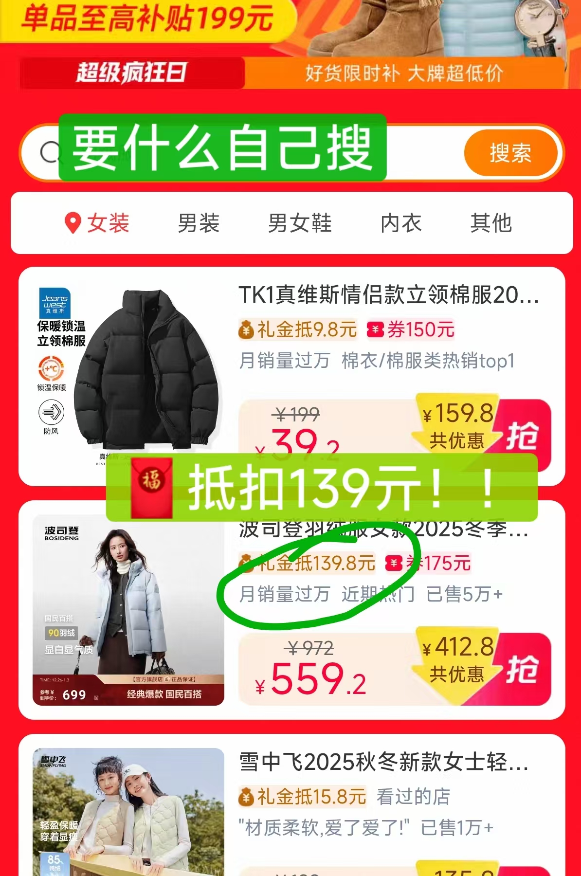荬衣服的块看看 现在有大额天降 波司登,雪中飞等等羽绒服好单发报员2026年01月14日 13:590举报 荬衣服的块看看现在有大额天降波司登,雪中飞等等羽绒服https://s.click.taobao.com/Hb35TFo复制此消息 打开桃宝查看-想要什么自己搜,都有男装 女装 鞋子等等 都囤复制文案