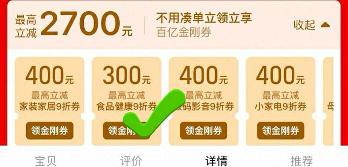 ①最上方如图領食品9折金刚卷 复制此消息 打开桃宝查看好单发报员2026年01月14日 15:180举报 ①最上方如图領食品9折金刚卷https://s.click.taobao.com/0nMlsQo复制此消息 打开桃宝查看复制文案