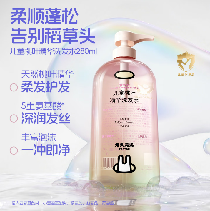 【自营】兔头妈妈 儿童桃叶精华洗发水280ml