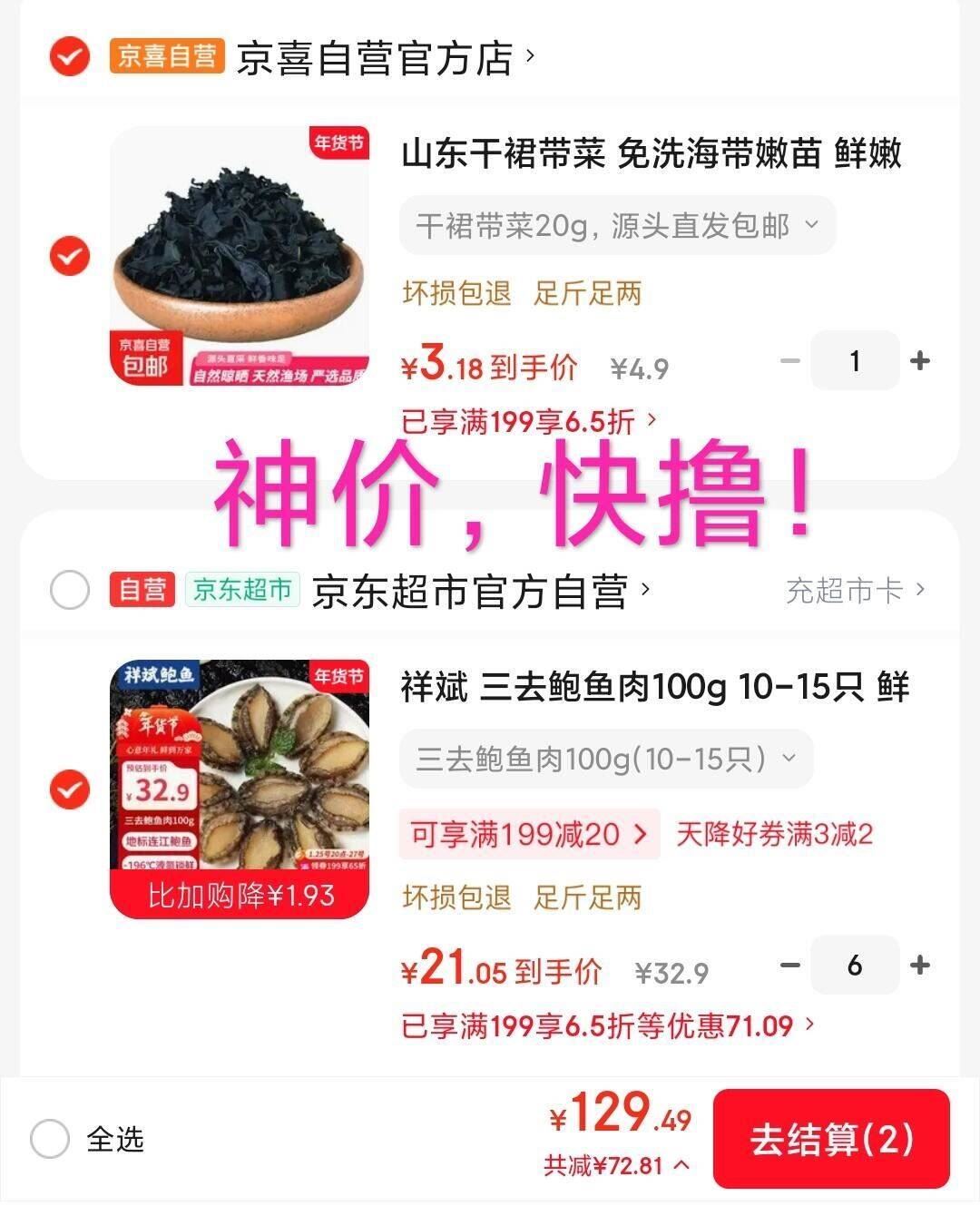 一起提交付款 6件鲍鱼实付126.3元 超值!