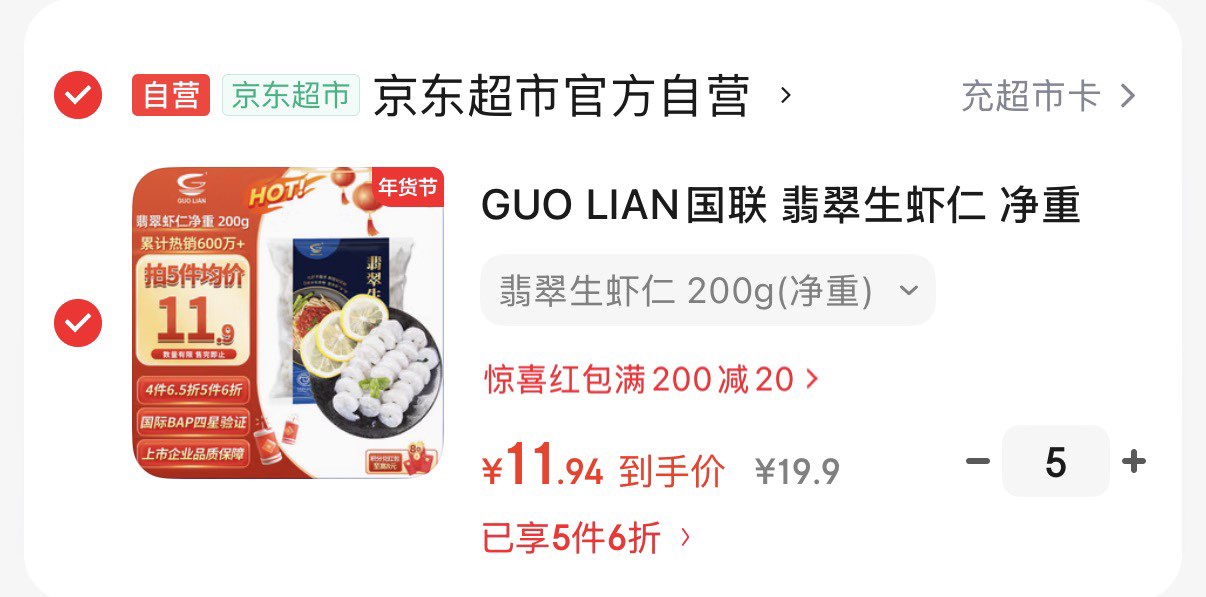国联翡翠虾仁净重200g 拍5件59.7亓 折11.9/袋好单发报员2026年01月25日 20:450举报 国联翡翠虾仁净重200g拍5件59.7亓 折11.9/袋https://u.jd.com/JDIiysq 复制文案
