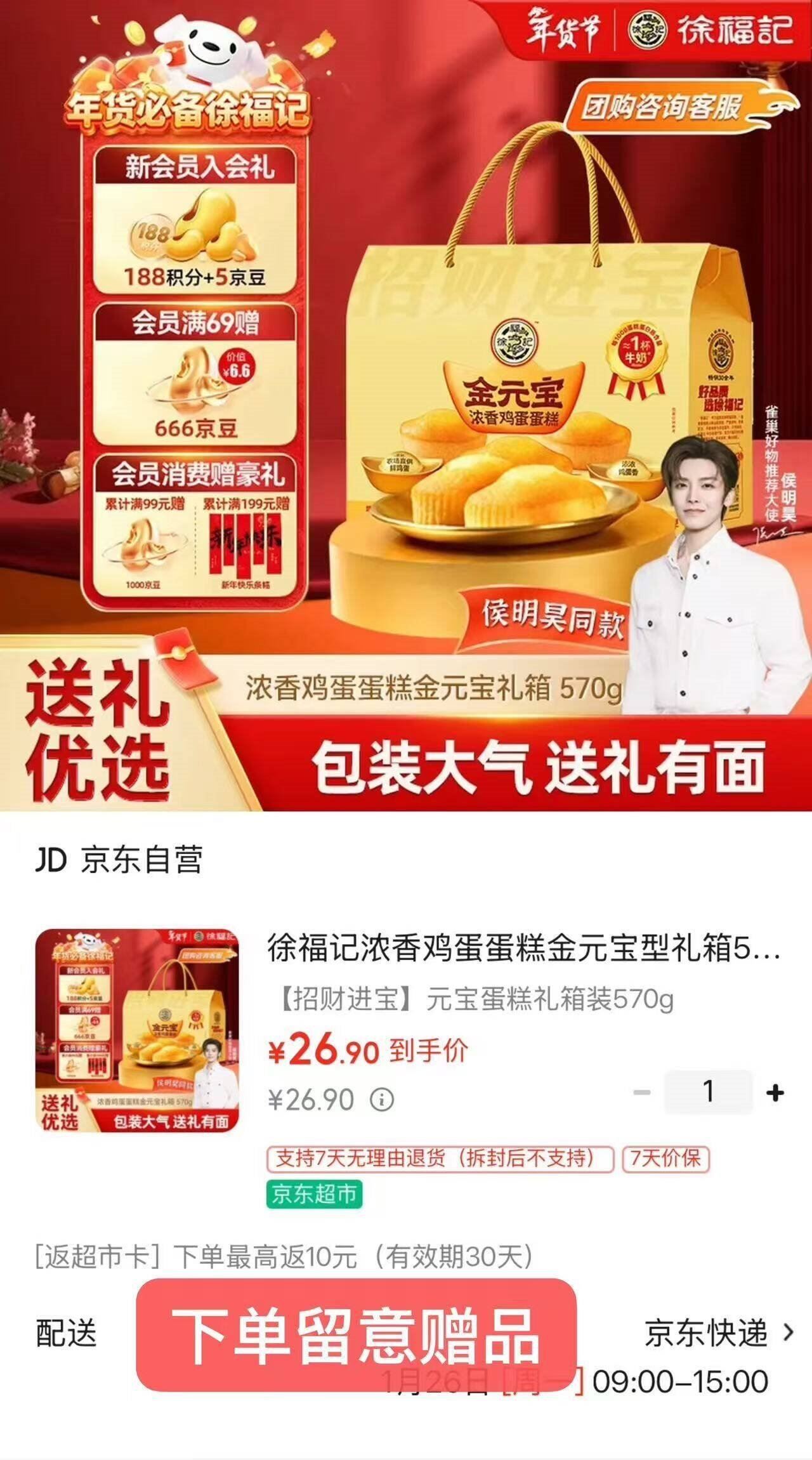 徐福记礼盒发車 自营 徐福记 鸡蛋糕礼盒570g 26.9亓 云費,plus无限包U好单发报员2026年01月25日 21:150举报 ——徐福记礼盒发車——【自营】徐福记 鸡蛋糕礼盒570ghttps://u.jd.com/JDIBJ7l 26.9亓 云費,plus无限包U*反10亓超.市卡 轻便独立包装复制文案