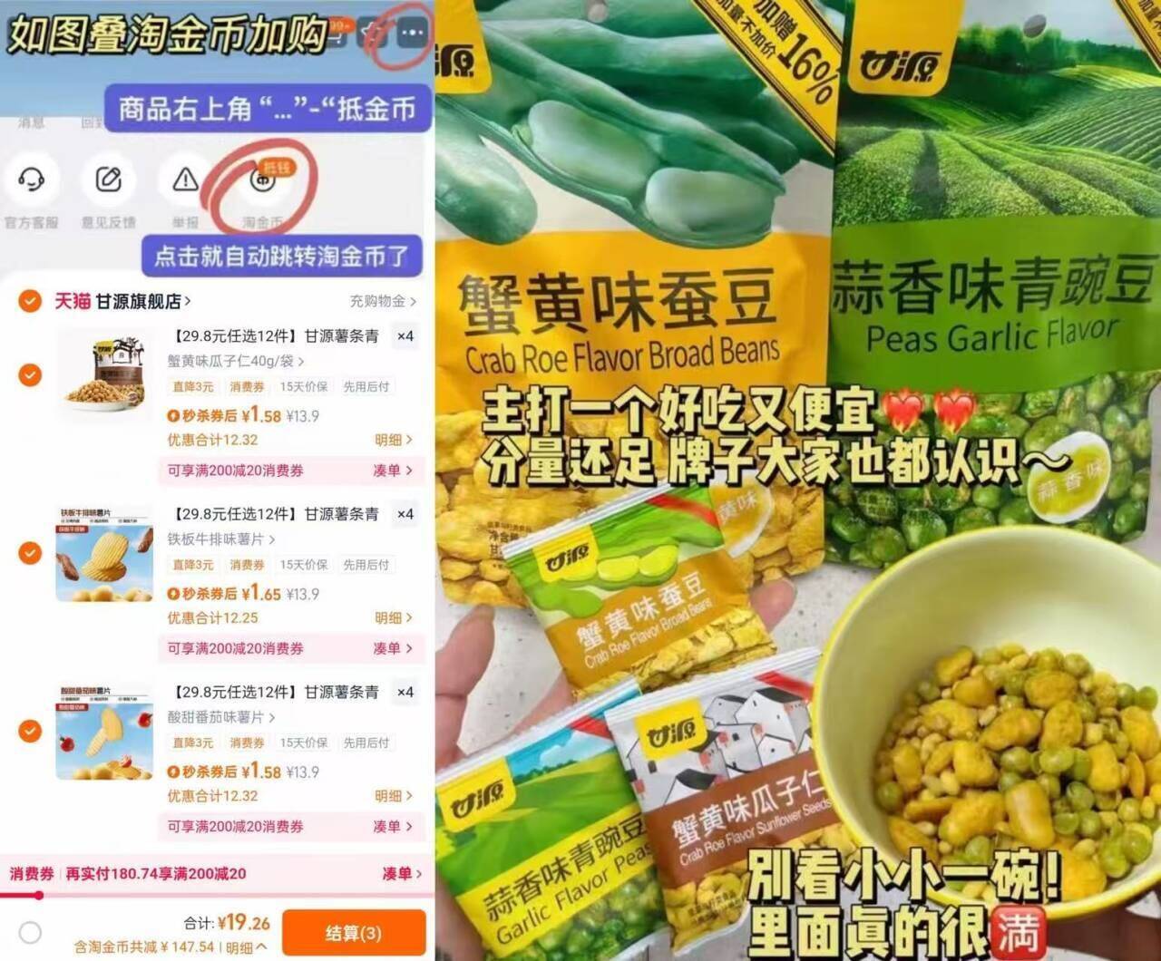 1.6/件甘源零食任选 叠金币任选12件19.2 青豌豆/瓜子仁/炒米都任挑好单发报员2026年01月25日 21:150举报 1.6/件甘源零食任选叠金币任选12件19.2青豌豆/瓜子仁/炒米都任挑https://m.tb.cn/h.7LvFwGU复制文案