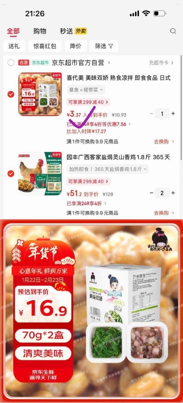 领京红 喜代美 章鱼裙带菜下酒菜 70g*2 入会,凑后 3.37好单发报员2026年01月25日 21:270举报 领京红https://u.jd.com/J6IHZMX 喜代美 章鱼裙带菜下酒菜 70g*2入会,凑后【3.37】 https://u.jd.com/JgI9uIU 复制文案