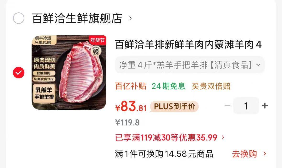 二十块一斤的羊排 冲 - 原切新鲜净羊排4斤装好单发报员2026年01月25日 21:490举报 二十块一斤的羊排 冲-原切新鲜净羊排4斤装https://u.jd.com/J1IY6gR 拍下89.8亓,plus仅83.8复制文案