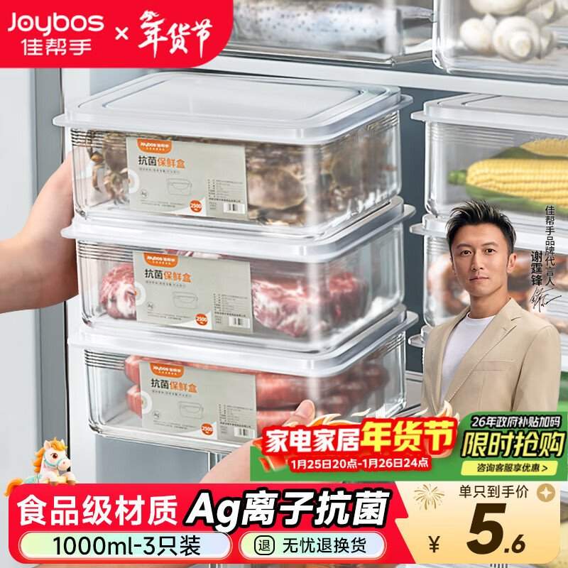 【自营】佳帮手 食品级抗菌冰箱保鲜盒1000ml*3个