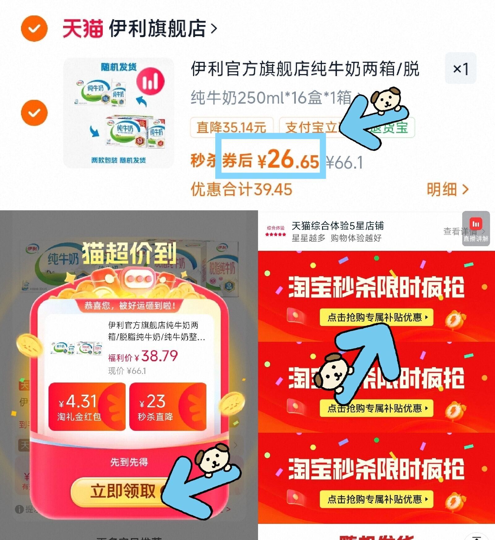 26.6亓!速度领礼金 下拉详情页秒杀界面拍 伊利旗舰店好单发报员2026年01月25日 21:570举报 26.6亓!速度领礼金下拉详情页秒杀界面拍【伊利旗舰店】伊利纯奶/脱脂奶250ml*16盒https://m.tb.cn/h.7L6zLmw复制此消息 打开桃宝查看复制文案
